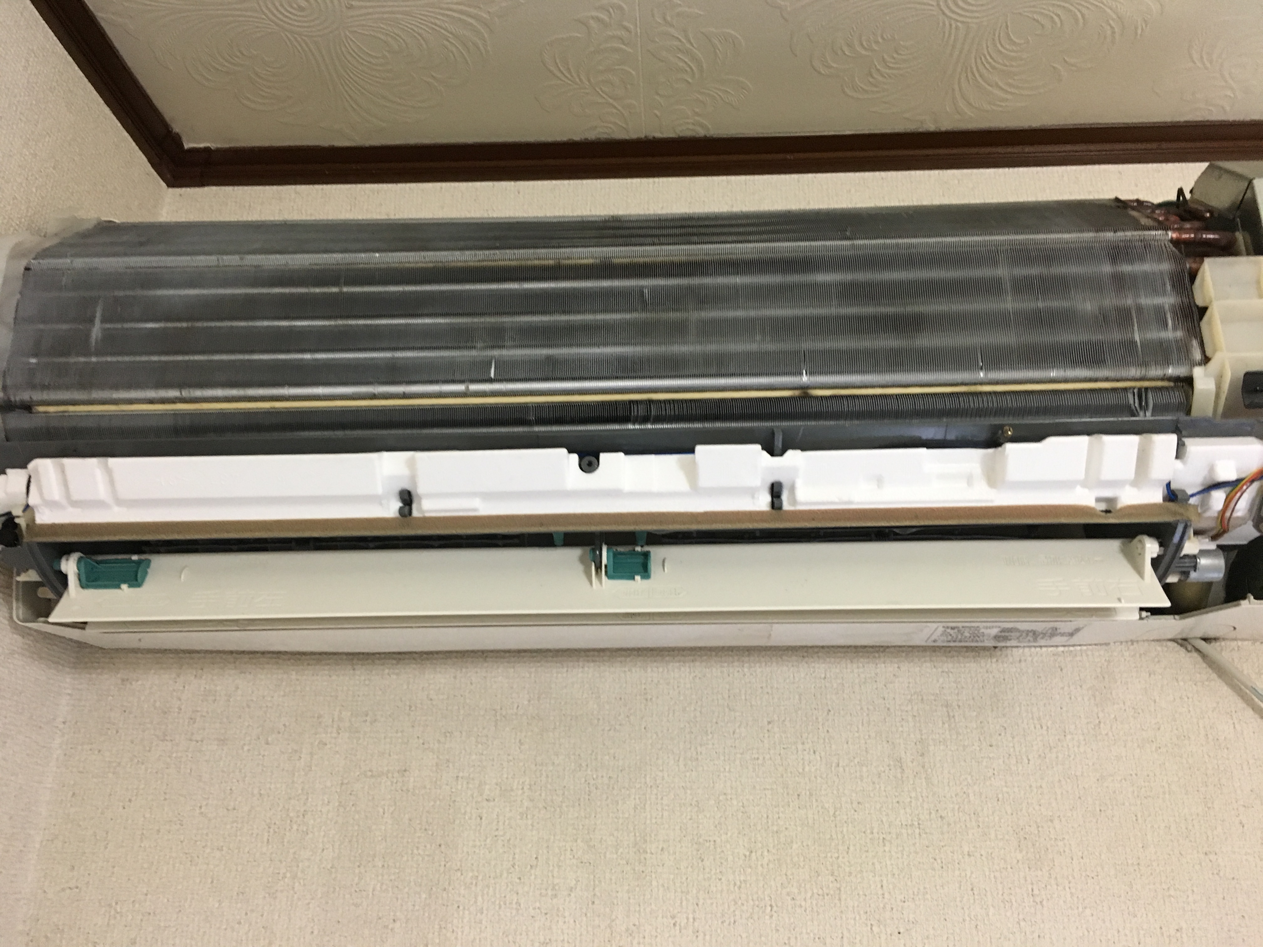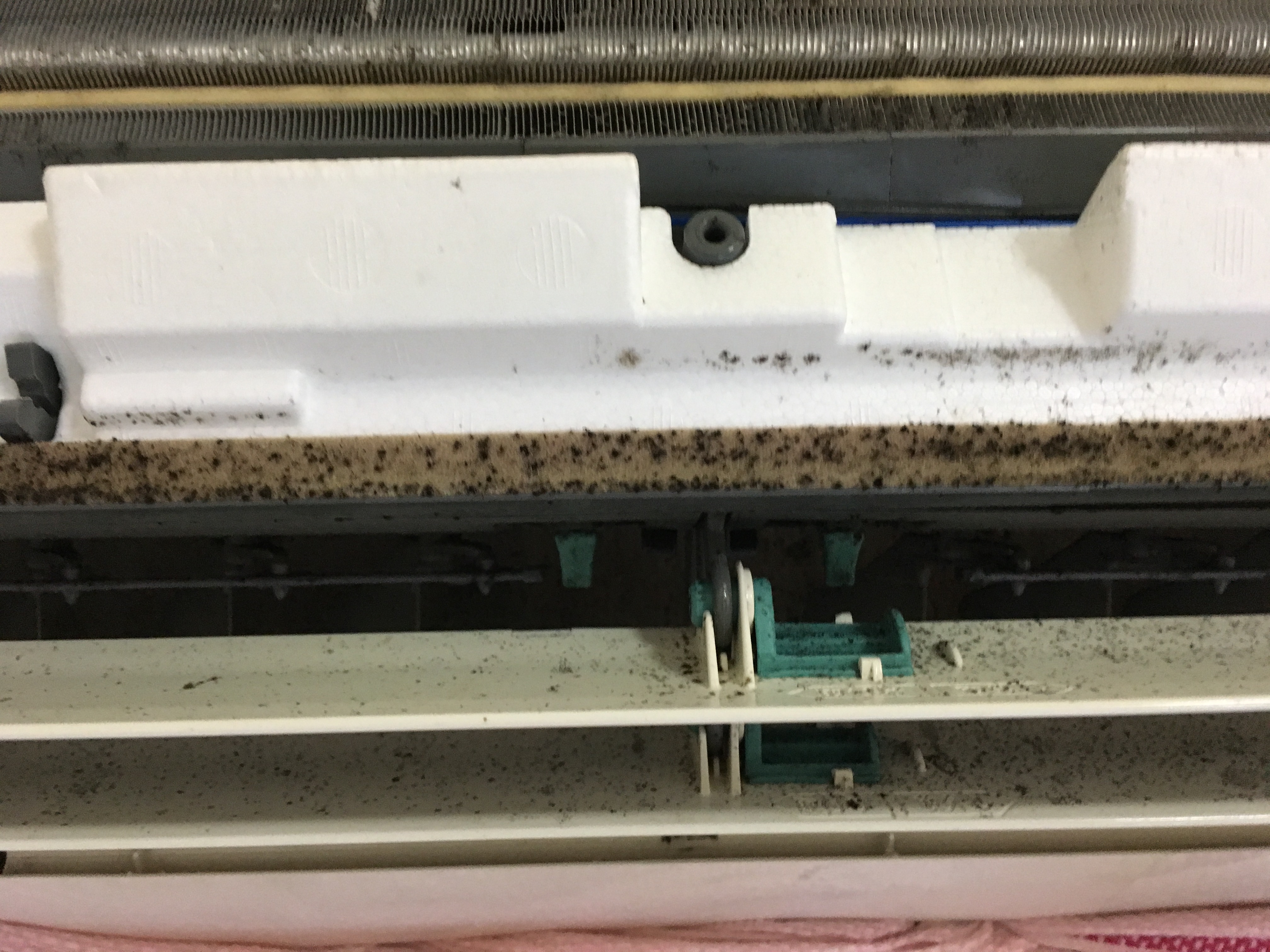 このエアコンから、これだけの黒いカビが出ました。このようなカビは、健康に良くありませんので、定期的にクリーニングしましょう。
