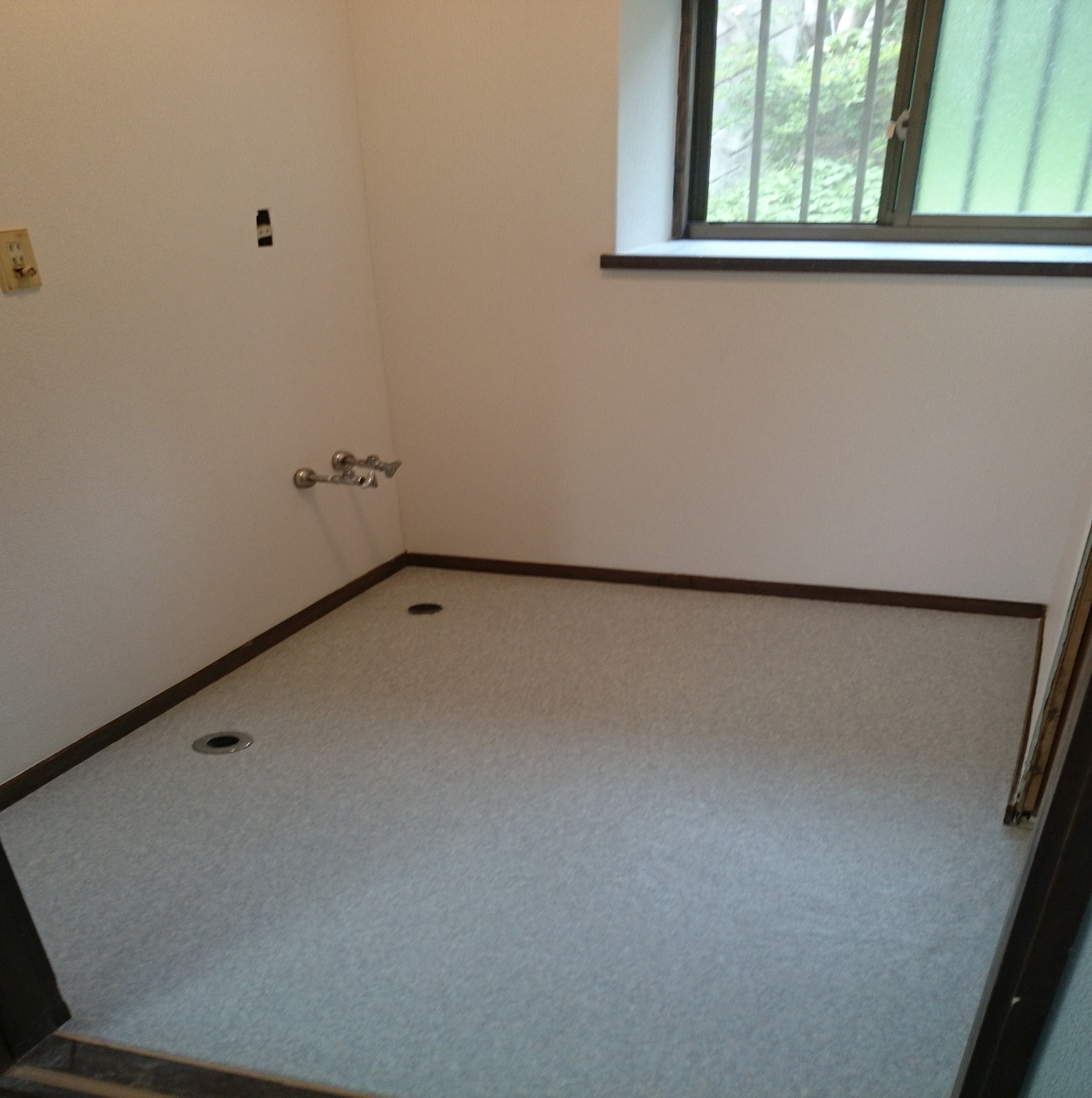 壁紙を剥がし、下地を直し、フローリングの下地も腐っていましたので、その部分もお直してから、壁紙を貼り、クッションフロアを貼りました。