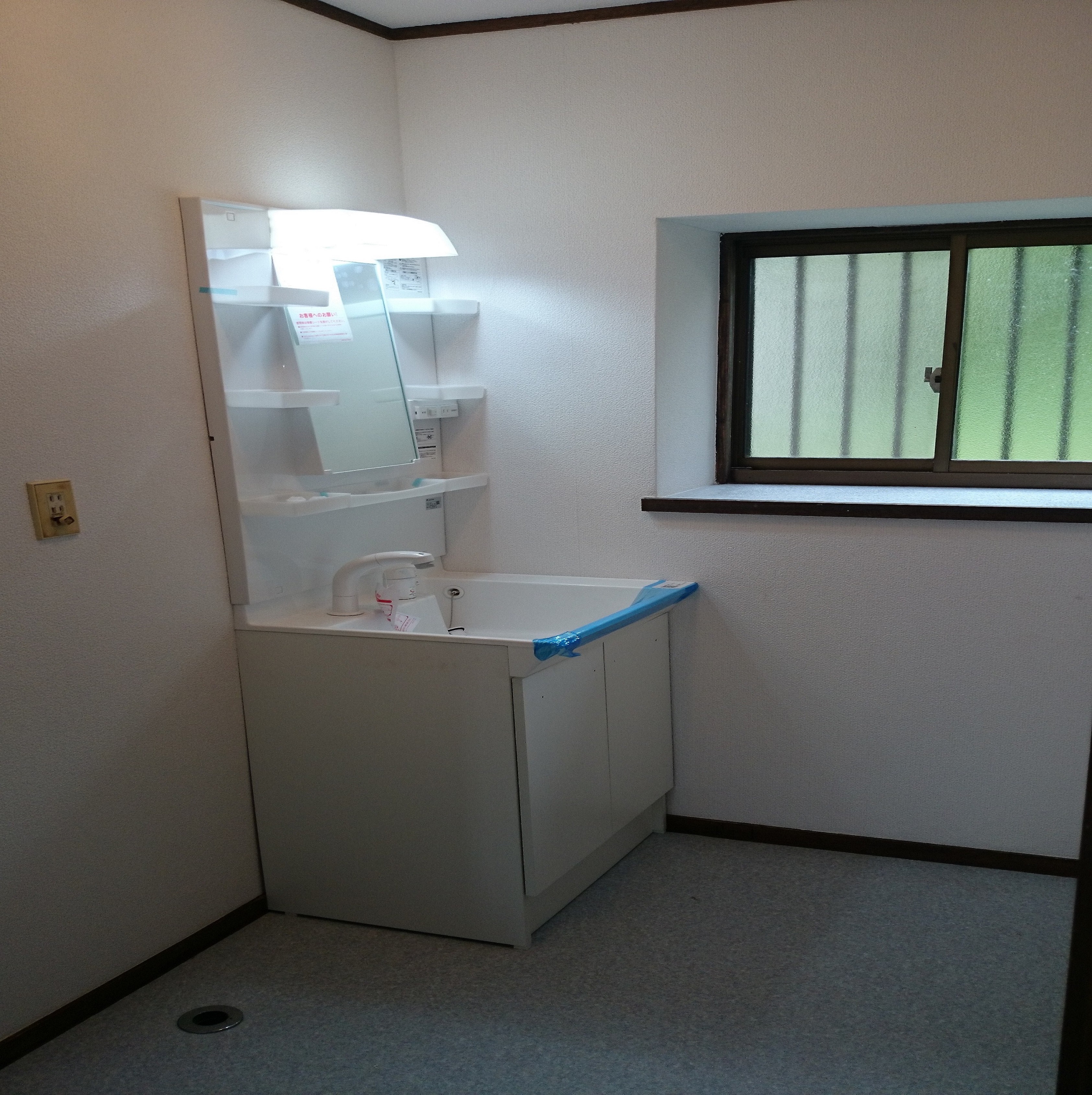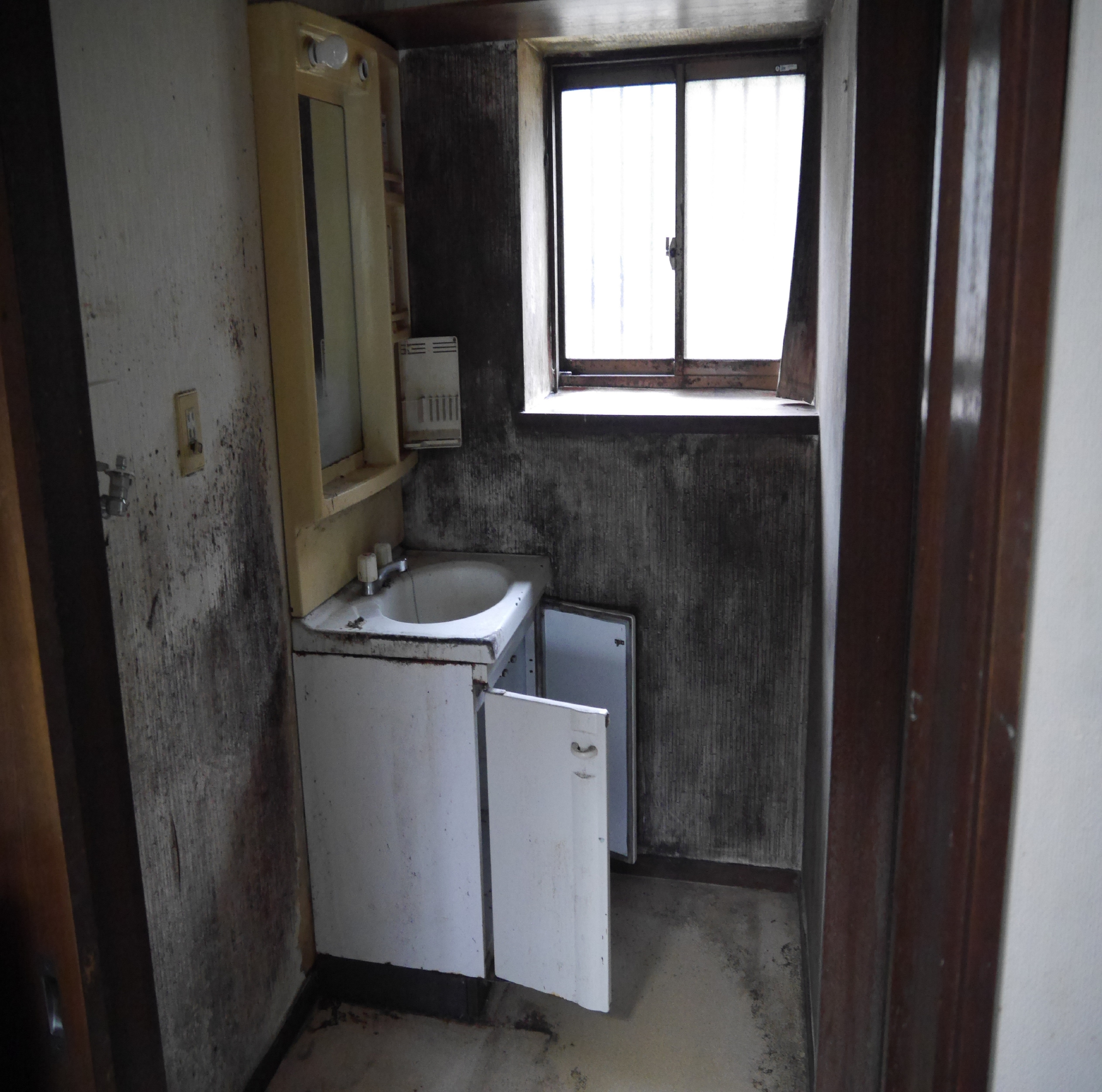 ここは、洗面所です。清掃するよりは、リフォームする方が、安くてキレイになるので、お客様の了解を得て、リフォームすることになりました。