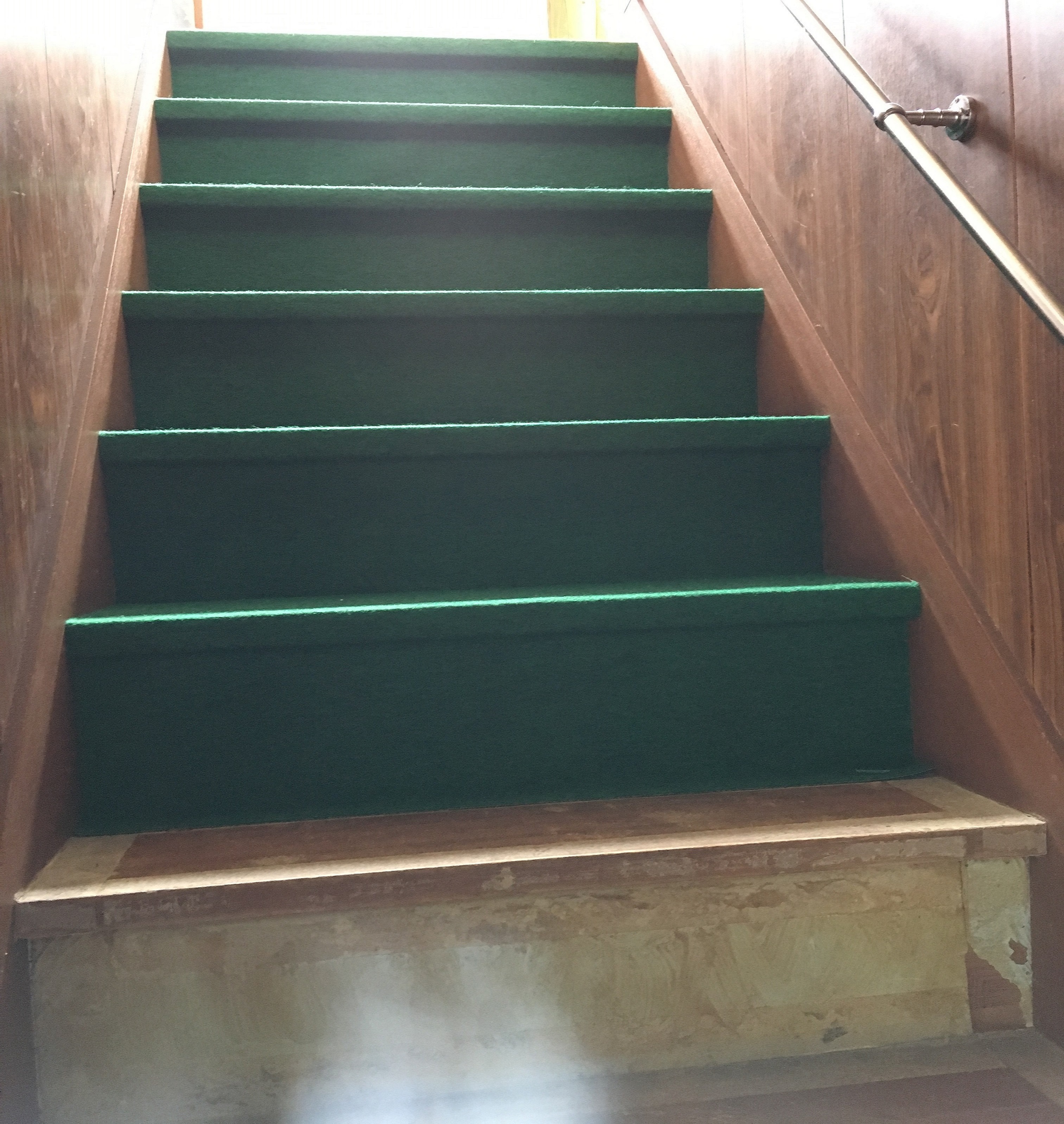 新しいカーペットは、お客様の希望で、グリーンになりました。貼っている途中の写真です。