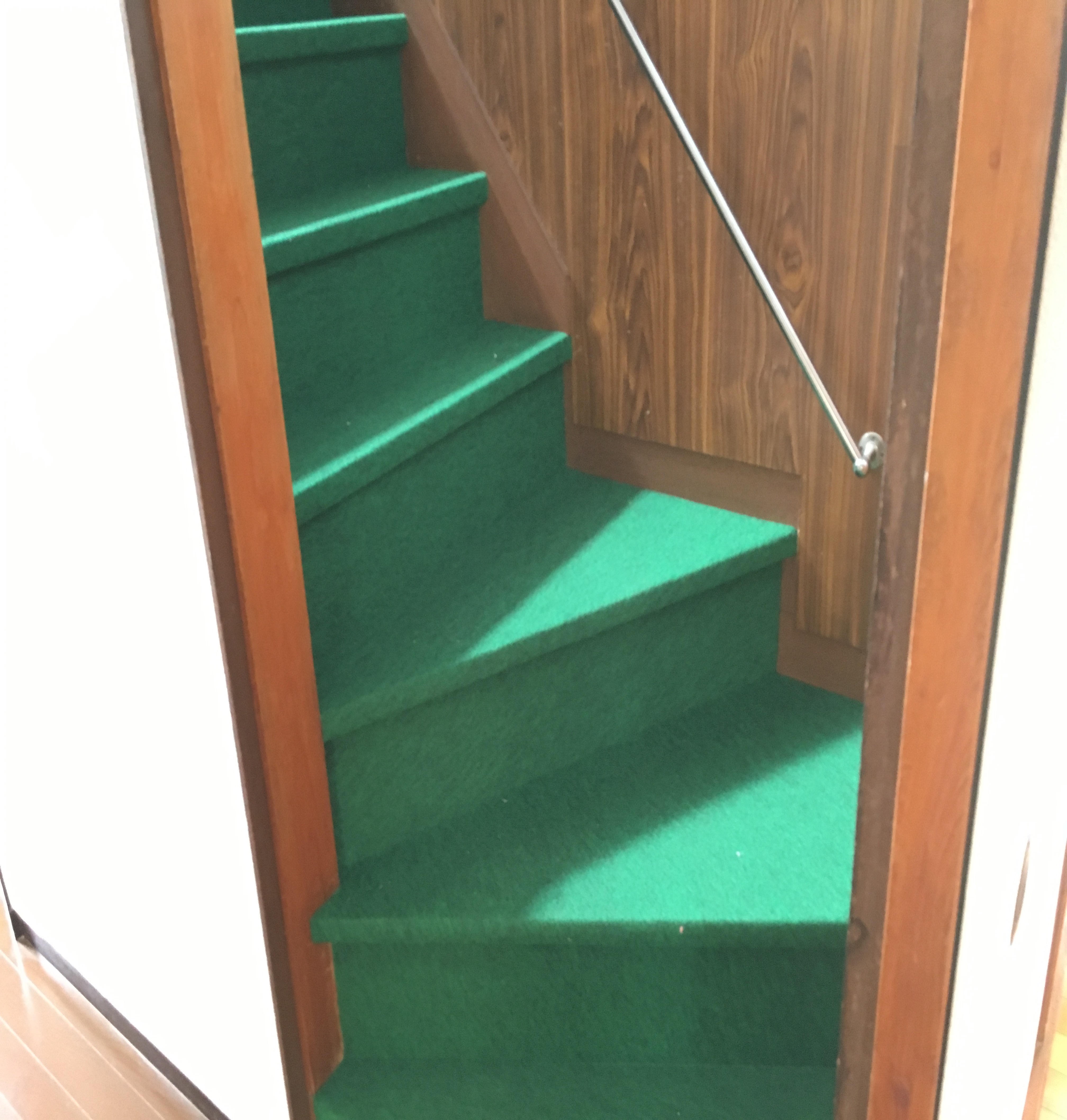 階段のリフォームをする場合は、いくつかの方法がありますが、この現場は、一度カーペットマットを貼ったところでした。汚くなっていたので、それを剥がし、これから次の写真のようにきれいに貼っていきます。