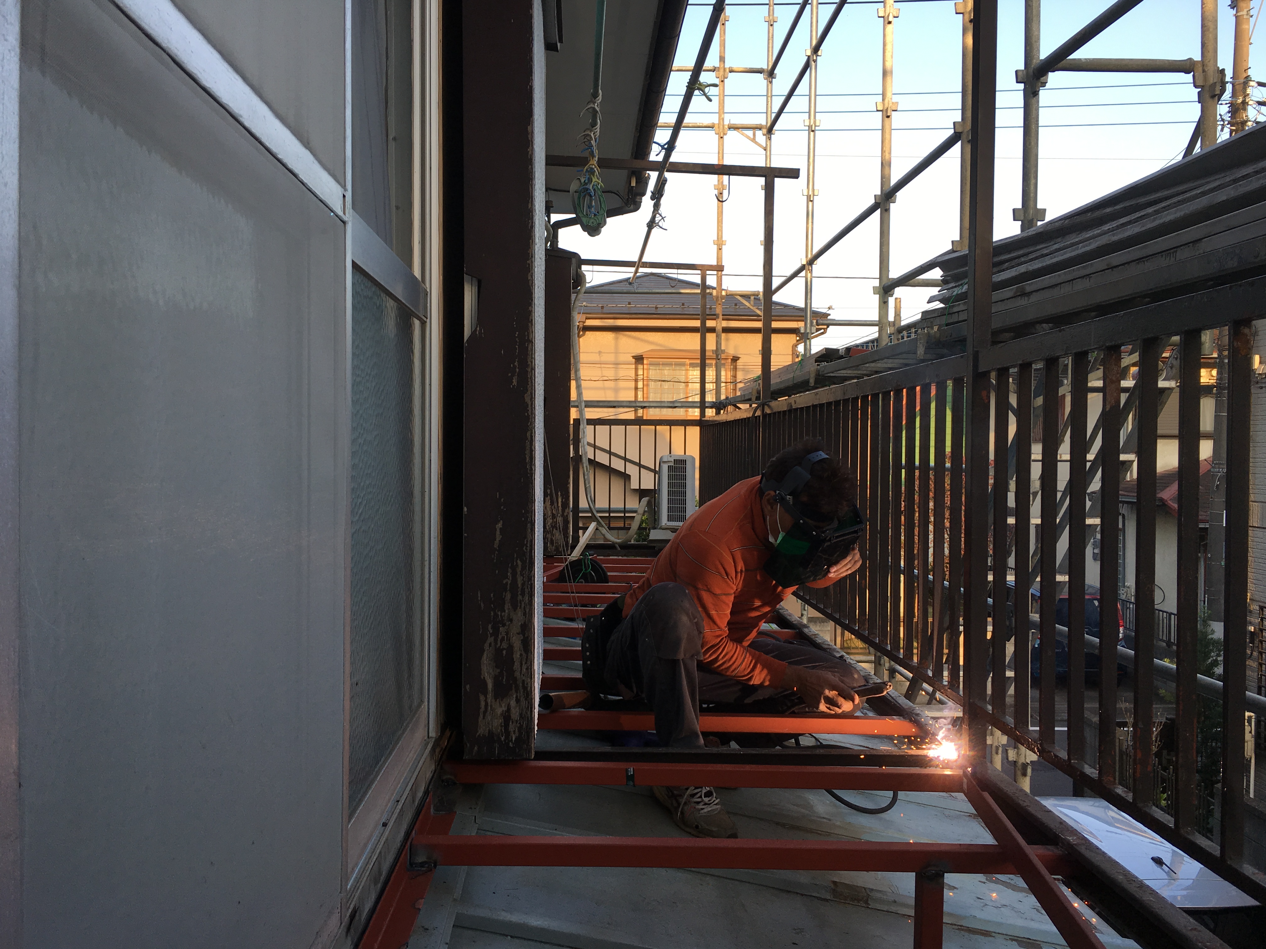 この写真は、腐った鉄の部分を外し、新しく溶接しているところです。