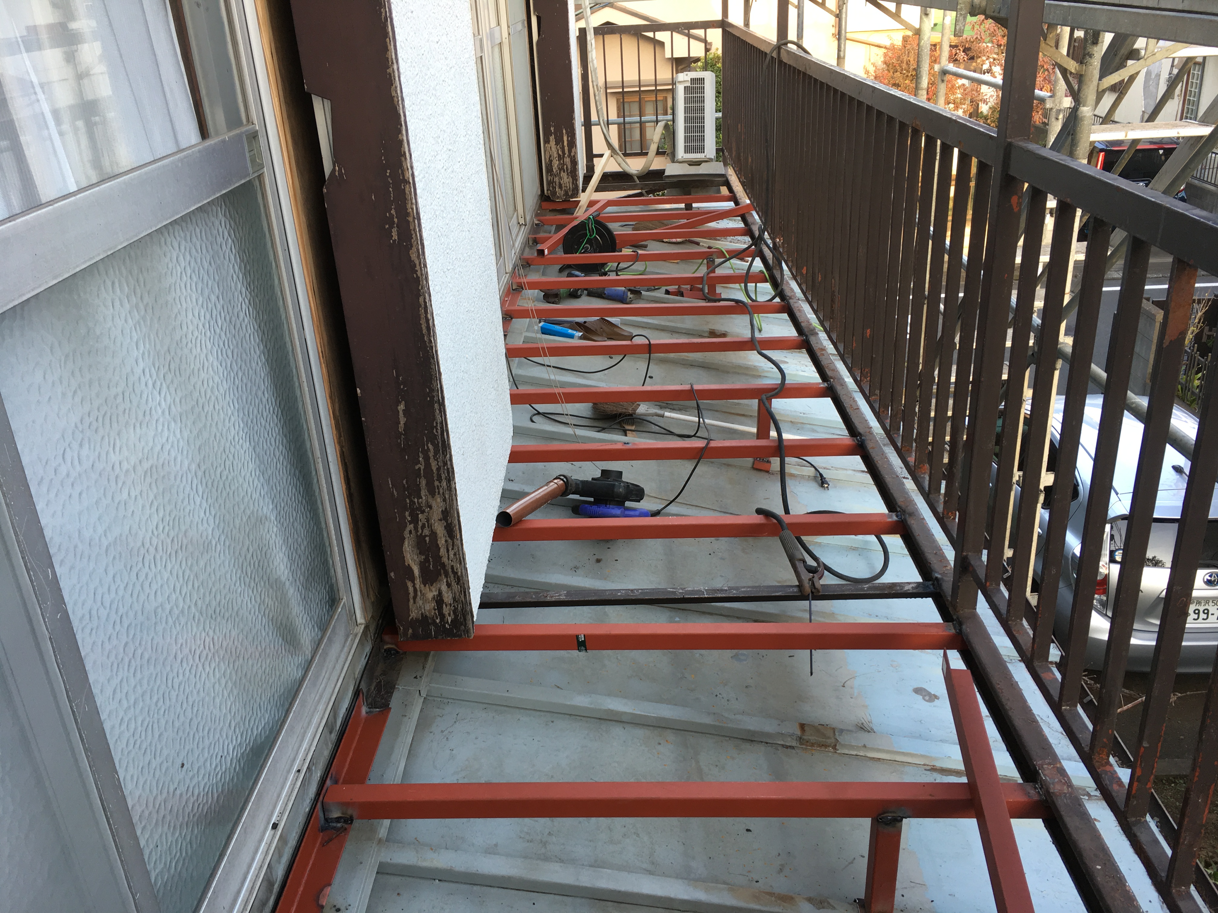 べランダの板を外してみたところ、鉄の部分が腐っていました。これから、すべて外し、新しくします。