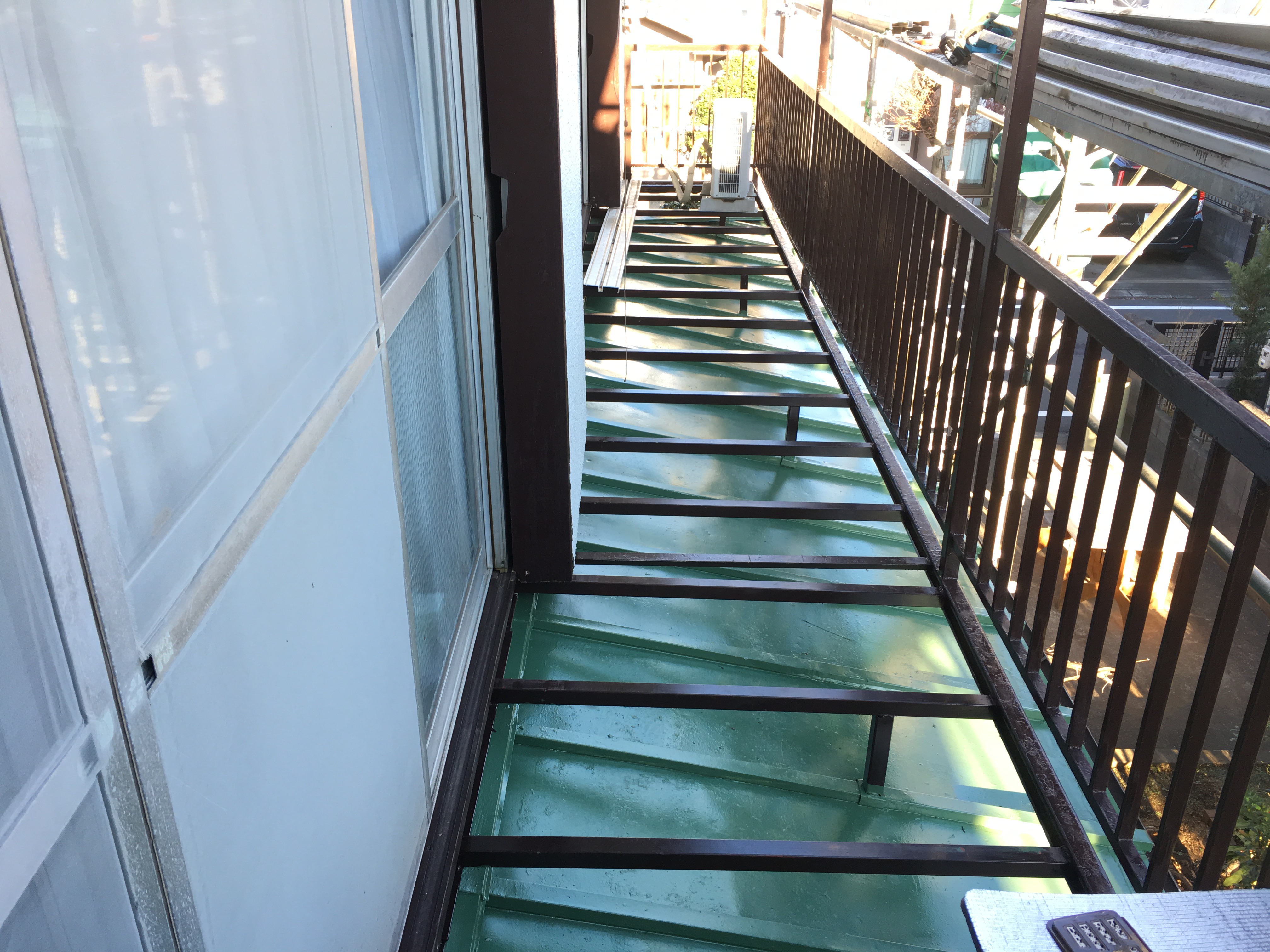 ベランダの下の屋根とベランダ全体を塗装し、ベランダの板を敷けば、これで、完了です。